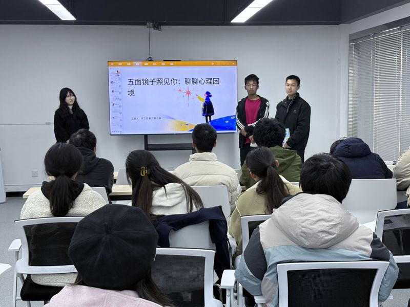 活动伊始,主持人通过“心情天气卡”等互动环节,引导同学们将内心感受转化为语言,梳理情绪。随后,三位主持人结合自身经历与现实生活场景,分享了阅读中的触动与思考,强调“说出痛苦并非羞耻,而是从被动承受走向主动面对的强者之举”这一重要启示,引发了在场同学的强烈共鸣。在自由分享环节,主持人通过匿名交换明信片、书写建议等形式,生动践行了全书最核心也最有力的行动呼吁——“你该找个人聊聊”。