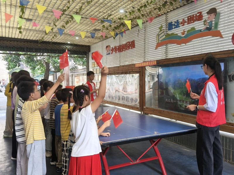 活动伊始,志愿者首先为孩子们讲解了国庆节的历史背景与重要意义。在爱国诗词赏析环节,志愿者通过生动的历史故事,将文天祥《过零丁洋》中“人生自古谁无死,留取丹心照汗青”所蕴含的赤诚丹心与家国情怀娓娓道来。随后,小朋友们齐声合唱《歌唱祖国》,挥舞着鲜艳的五星红旗,用稚嫩而嘹亮的歌声表达对祖国的真挚祝福,将现场气氛推向高潮。