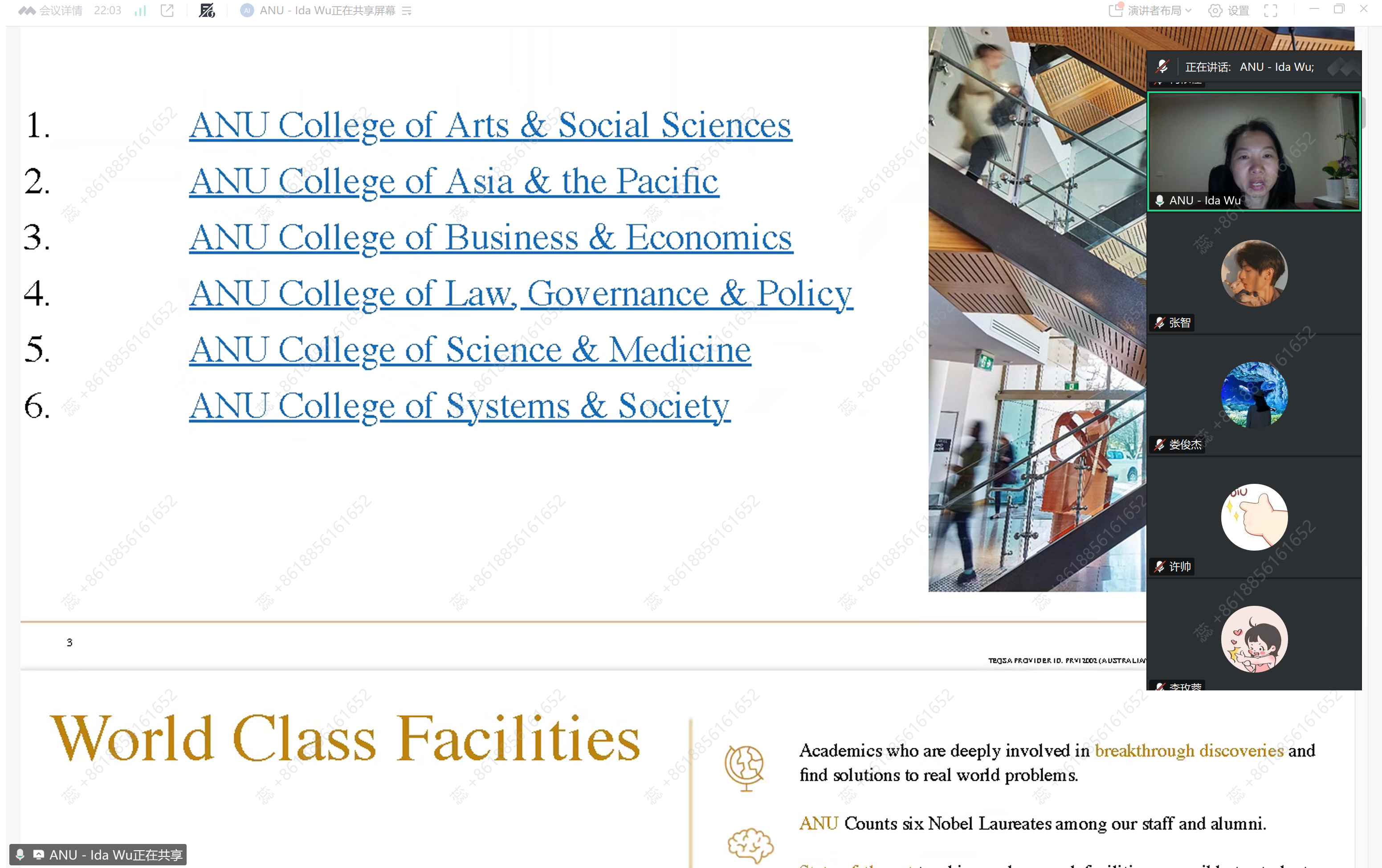 10月9日晚,澳大利亚国立大学研究生课程证书项目宣讲会顺利举行。会议由澳大利亚国立大学国际招生与奖学金办公室协调专员Ida Wu主讲,吸引了我院2024级与2025级约30名研究生参加。