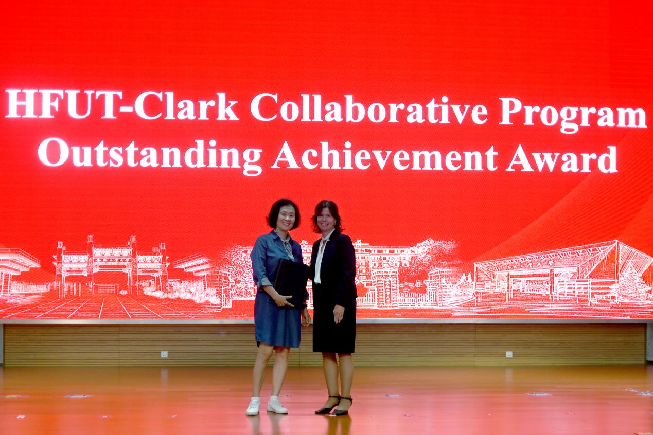 最后,Jennifer Hanselman和张炳武共同为参加2025年克拉克大学暑校项目的学生颁发证书。Jennifer Hanselman为克拉克大学外籍教师Yingjuan Rogers颁发“十周年外教杰出贡献奖”。