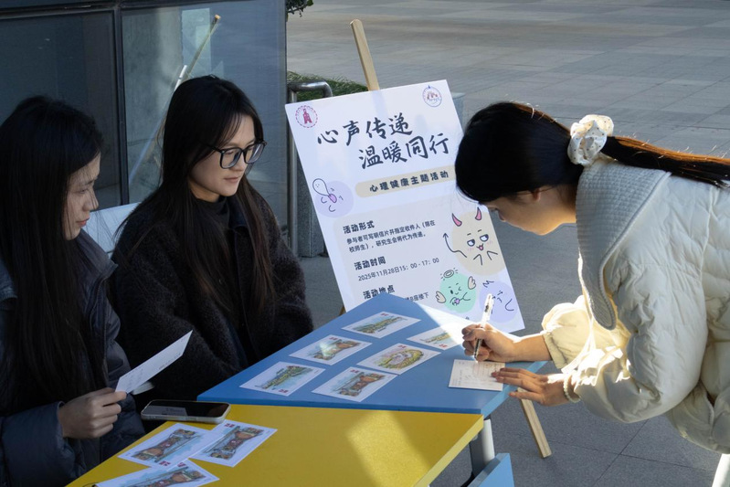 11月28日下午,经济学院研究生会联合土木与水利工程学院研究生会,于翡翠湖校区科教楼B座楼下开展“心声传递,温暖同行”心理健康主题活动,为在校师生搭建情感沟通桥梁。