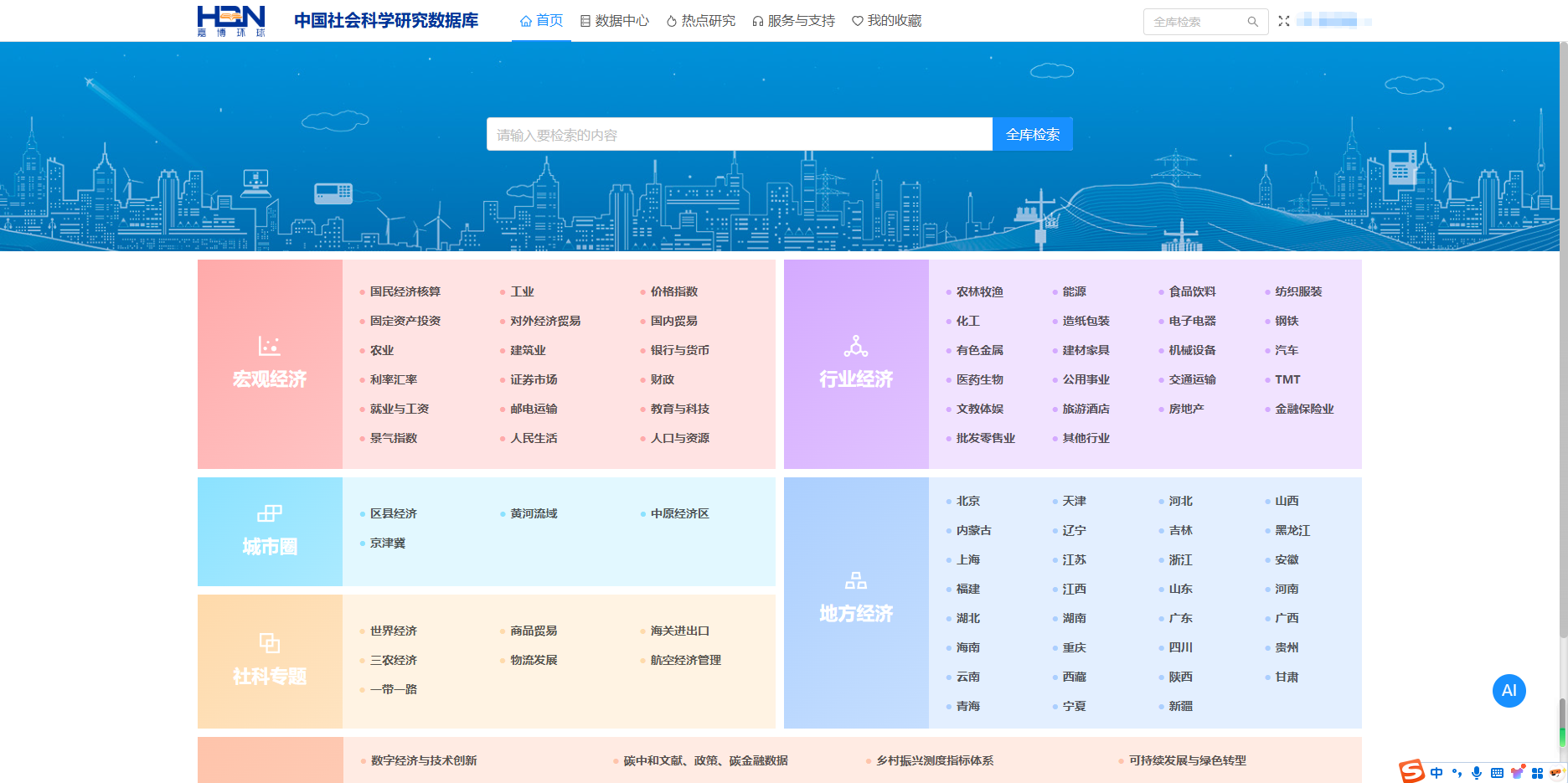 中国社会科学研究数据库是一款专注于社会科学领域的专业化数据服务平台,以 “提供全面、准确的数据资源与高效的分析工具,助力用户把握经济发展脉搏、洞察行业动态” 为核心使命。平台打破数据维度与行业领域的壁垒,覆盖宏观经济、行业趋势、地方发展等多个关键层面,深入工农业、新兴产业等多元领域,为学术研究、企业决策、政府调控、教育教学等场景提供一站式数据支撑,帮助用户从宏观到微观、从全局到局部全方位理解经济社会运行规律,实现数据驱动的科学决策与深度研究。