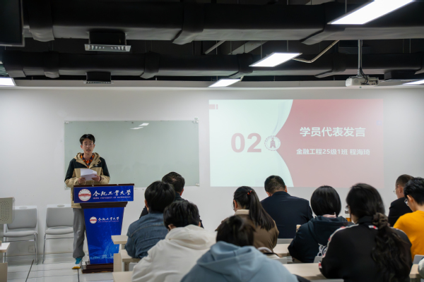 仪式在庄严的国歌声中拉开序幕。学院2025级本科生程海琦同学作为学员代表发言,表达了入党积极分子们勇于担当、锤炼品格、坚定听党话、跟党走的决心。朱怀谦老师宣读了培训班的课程安排,夏坤老师明确了相关纪律要求,为学员们勾勒出清晰的学习蓝图,要求大家端正学习态度,严守纪律,认真领会党课内容。