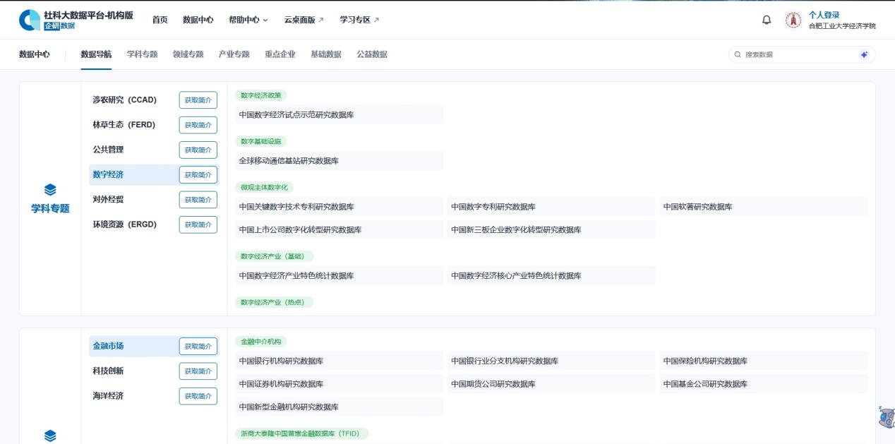 1. 进入企研·社科大数据平台网站(https://r.qiyandata.com)后,IP自动识别登录。